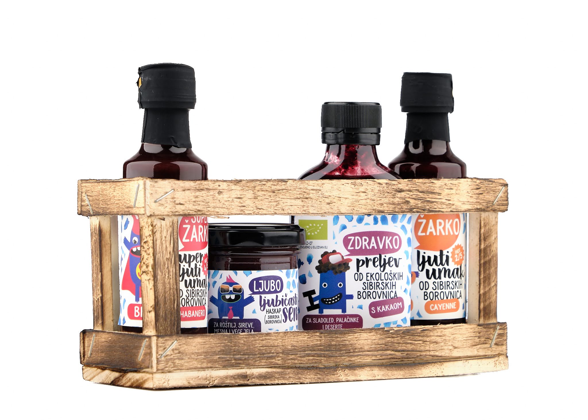 Sastoji se od ljutog umaka 100 ml, preljeva 100 ml, ljubičastog senfa 106 ml, super ljutog umaka 100 ml.
