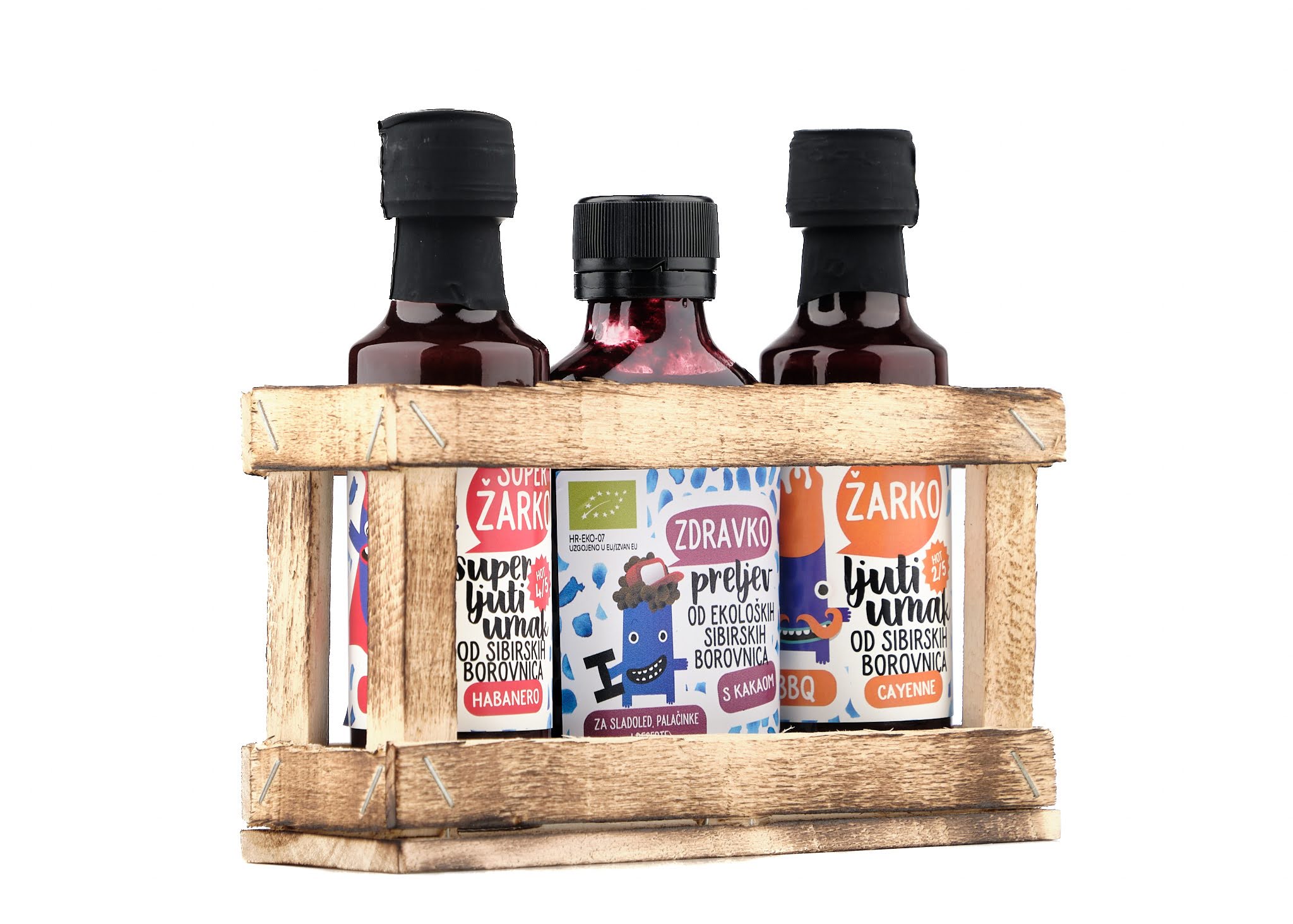 Sastoji se od ljutog umaka 100ml, preljeva 100 ml, super ljutog umaka 100 ml.